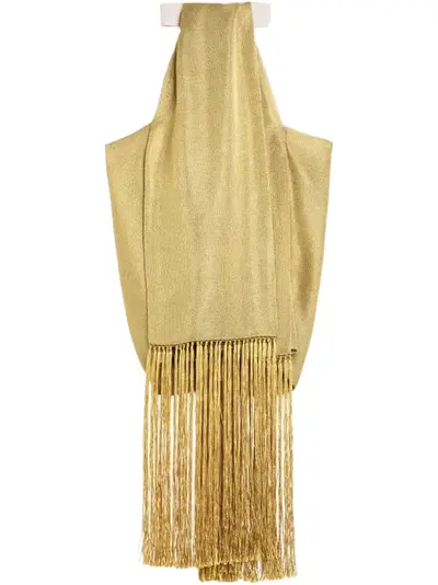 gold-tone halterneck open back sleeveless fringed edge