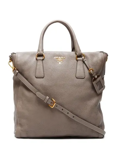 circa 2000-2020 blush beige calf leather grained texture two rolled top handles adjustable detachable shoulder strap appliqué logo luggage tag partitioned compartment internal logo patch multiple internal slip pockets gold-tone hardware Condition: GOOD. This previously owned and used item is in good condition with minimal signs of use. This may include fading of material or plating and scratches.