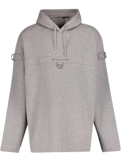 grey drawstring hood embroidered logo at the chest long sleeves straight hem