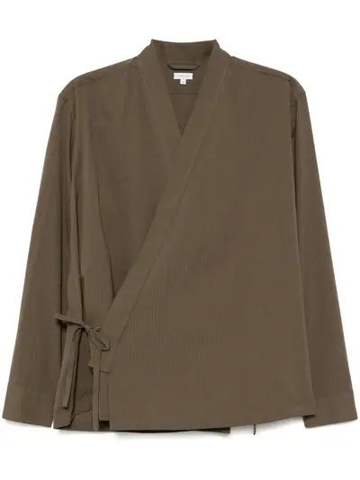 dark green self-tie fastening long sleeves buttoned cuffs
