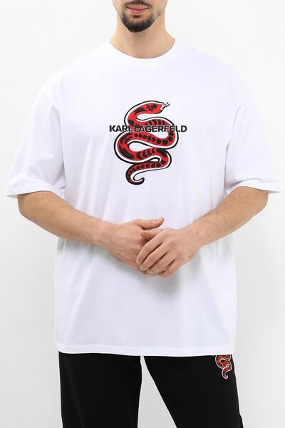 Футболка хлопковая с принтом Karl Lagerfeld 7312364 (белый, lpn29407642)