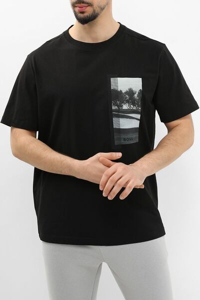 Футболка хлопковая с принтом Boss by Hugo Boss 7323700 (чёрный, lpn29407678)