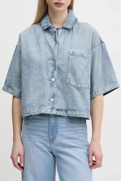 Рубашка джинсовая укороченного кроя Hugo 7532065 (голубой, lpn29407711)