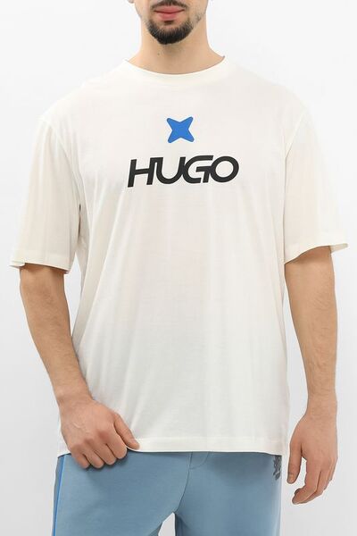 Футболка хлопковая с принтом Hugo 7614808 (бежевый, lpn29407720)