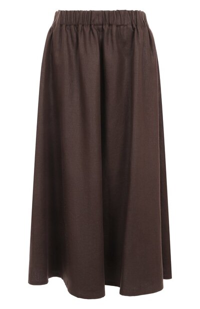 Льняную юбку с широким эластичным поясом дополнили боковыми карманами. Модель будет гармонично смотреться в повседневном комплекте и со свитером в тон, и с контрастной рубашкой.