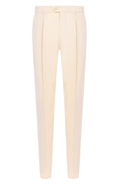 Брюки с защипами и стрелками дополнили задними прорезными и боковыми карманами. Модель из хлопкового вельвета органично впишется в повседневный образ любой сложности.