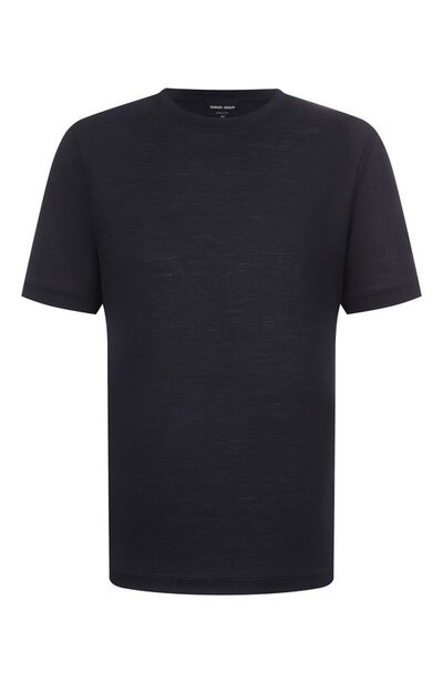 Футболку с круглым вырезом сшили из трикотажа на основе шерсти первого пострига. Лаконичная модель составит гармоничную пару и с расслабленными шортами, и с классическими брюками.
