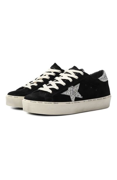 Замшевые кеды Hi Star с внутренней отделкой из кожи и текстиля поставили на широкую подошву с брендированным рантом и декоративными потертостями. Сбоку модель украсили нашивкой-звездой с глиттером, которой вторит накладка сзади.