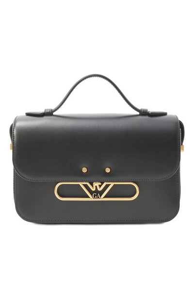 Сумку с одной ручкой и регулируемым плечевым ремнем сшили из гладкой телячьей кожи. Аксессуар закрывается на магнитную кнопку клапаном с золотистыми заклепками и крупной пряжкой Eagle. Внутри – плоский и накладной карманы.