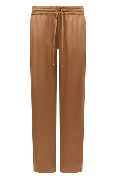 Однотонные брюки в пижамном стиле вошли в коллекцию Everyday. Для пошива модели с эластичным поясом-кулиской и четырьмя карманами использовали двойной атлас из шелка.