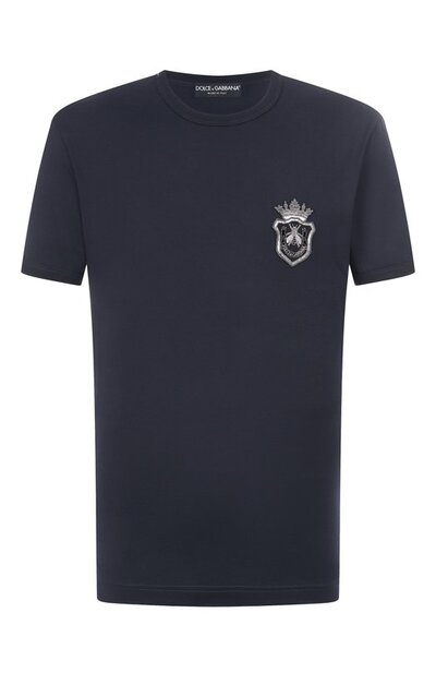 Футболку из коллекции Italian Holiday украсили брендированным гербом, искусно вышитым вручную канителью и бисером. Модель выполнили из хлопкового джерси.