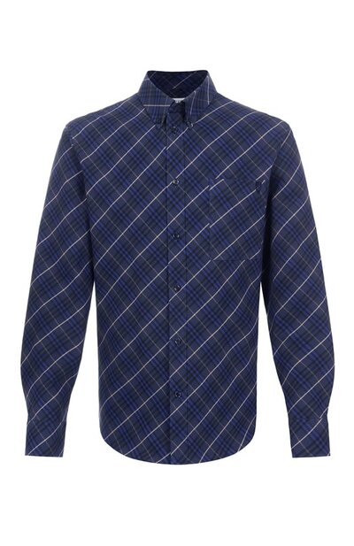 Рубашку с воротником button down изготовили из хлопка в фирменную клетку Burberry Check. Нагрудный карман декорировали миниатюрной вышитой эмблемой B-shield. Модель с бантовой складкой на спинке застегивается пуговицами в тон.