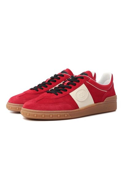 Кеды Upvillage выполнили из кожи и украсили контрастными накладками с эмблемой VLogo Signature. Тему фирменной символики поддержали брендированной вставкой на язычке и узором в виде шипов-пирамид на резиновой подошве.