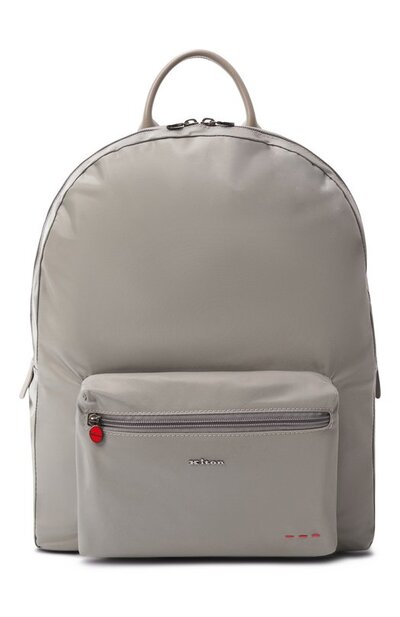 Рюкзак с контрастными регулируемыми лямками сшили из текстиля. На задней панели предусмотрели накладку для крепления аксессуара на телескопической ручке чемодана. Наружный карман подчеркнули рельефным логотипом и стежками фирменного алого оттенка. Внутри предусмотрели отсек для планшета и еще один карман на молнии.
