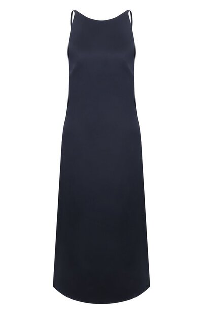 Миди-платье Delisia с вырезом лодочкой и регулируемым ремешком на открытой спинке сшили из гладкой ткани с добавлением вискозы. Модель с боковым разрезом на подоле застегивается потайной молнией сбоку.