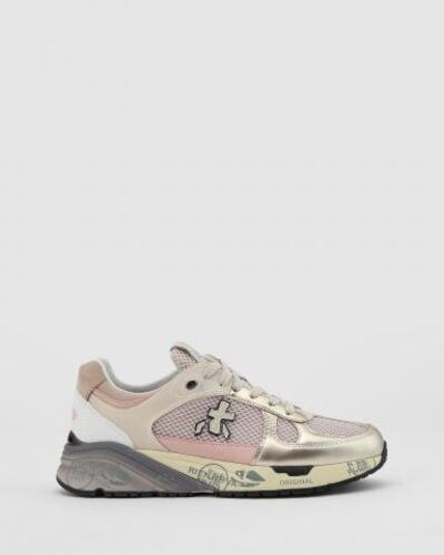 Комбинированные кроссовки Premiata в оттенках розового и золотого добавят в образ нотку нежности. Модель выполнена из текстиля, с вставками из кожи и замши. Внутри подклад и стелька также из кожи, подошва – из резины. Оригинальность дизайна достигается за счет сочетания нескольких фактур, фирменного принта и розовой шнуровки. Кроссовки подойдут для расслабленных образов с брюками и джинсами.