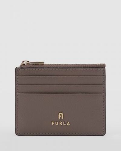 Кредитница FURLA из натуральной кожи в тёмно-сером цвете. Футляр для кредитных карт FURLA выполнен из натуральной телячьей кожи. Три слота для карт спереди, три слота сзади. Дополнительный карман на молнии для монет. Миниатюрный логотип FURLA Arch спереди.