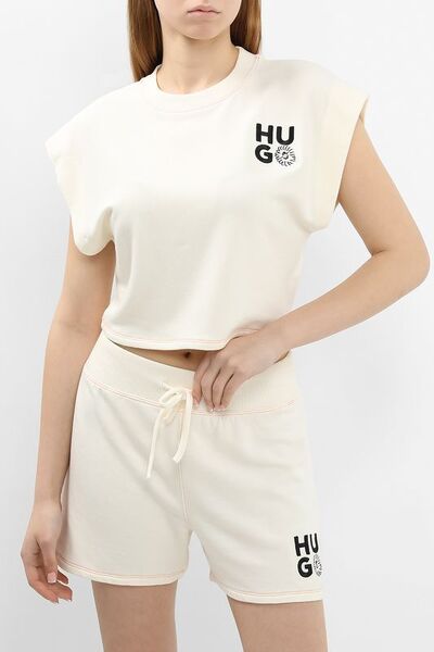 Майка хлопковая укороченная Hugo 7303328 (бежевый, lpn29443672)