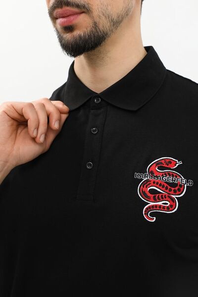 Поло хлопковое с принтом Karl Lagerfeld 7311890 (чёрный, lpn29443675)