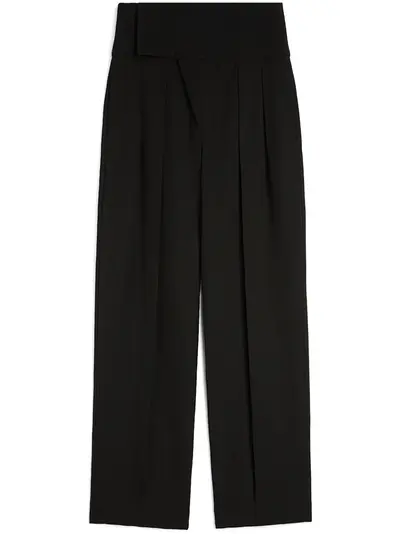 black concealed front fastening two side slit pockets two rear jetted pockets pleat detailing