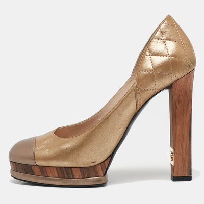 Chanel Metallic Gold/Bronze Quilted Leather CC Platform Pumps Size 38 1119934 (lpn29446924)