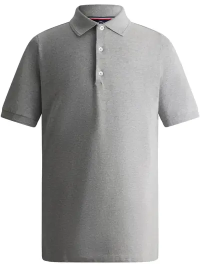ash grey front button placket embroidered logo at the sleeve polo collar short sleeves