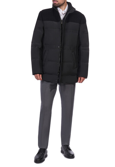 Черная куртка от Stefano Ricci — это воплощение изысканного стиля. Выполненная из высокотехнологичных материалов, она сочетает в себе современный дизайн и функциональность. Верхняя часть куртки украшена акцентной текстурой из мягкой шерсти, создающей стильный контраст с гладким материалом остальной поверхности. Классический прямой крой. Центральная застёжка на молнии, скрытая под планкой с кнопками, добавляет куртке лаконичности и защищает от ветра. Воротник-стойка обеспечивает дополнительную защиту от холода. Два боковых кармана с наклонным входом, оформленные декоративной окантовкой. Тёплая внутренняя подкладка создаёт комфорт даже в самые холодные дни, а оптимальная длина делает её подходящей для городской жизни и деловых встреч.