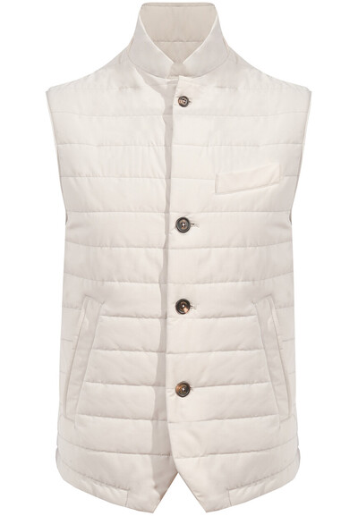 Жилет Eleventy представляет собой утончённое сочетание функциональности и эстетики. Основное полотно выполнено из высококачественного нейлона с водоотталкивающим покрытием, а горизонтальная прострочка придаёт изделию объем и обеспечивает равномерное распределение утеплителя. Внутренняя подкладка из мягкого материала добавляет комфорт, а современный крой акцентирует элегантность изделия. Воротник-стойка выполнен из замши, что придаёт модели роскошный акцент и обеспечивает дополнительную защиту от ветра. Прорезные карманы на передней части жилета идеально подходят для хранения мелочей, а нагрудный карман добавляет нотку утончённости. Нижний край жилета слегка скруглён, что добавляет мягкости общему силуэту. Высококачественный утеплитель обеспечивает тепло в прохладное время года, сохраняя лёгкость изделия. Серый цвет модели делает жилет универсальным и подходящим для различных случаев. Этот жилет идеально впишется в многослойный образ. Носите его поверх кашемирового свитера или классической рубашки для создания утончённого образа. Комбинируйте с брюками чинос или тёмными джинсами, чтобы подчеркнуть элегантность и комфорт. Для завершения образа добавьте дерби или замшевые лоферы и классический шарф.