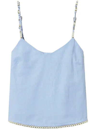 light blue adjustable spaghetti straps V-neck sleeveless bead embellishment