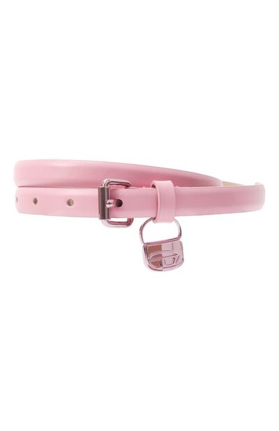 Узкий ремень D-Charm изготовили из гладкой кожи. Аксессуар застегивается небольшой пряжкой, в тон которой выполнили подвеску в форме сумки 1DR.