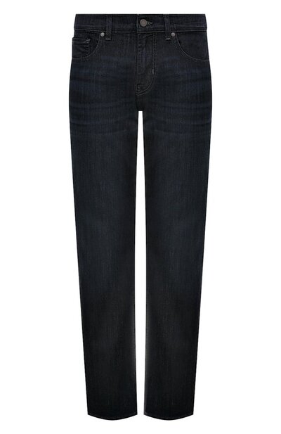 Прямые джинсы сшили из плотного хлопка, в который добавили полиэстер и эластан. В отличие от аналогов из чистого хлопка, такой текстиль получился прочнее, но при этом тоньше и легче. Деликатным декором темно-синих брюк с низкой посадкой стали легкие заломы на пару оттенков светлее.