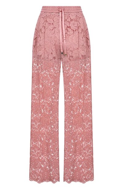 Брюки из кордового кружева с цветочным мотивом и паттерном DG вошли в коллекцию DNA. Посадка модели с боковыми карманами и коротким крепдешиновым подкладом регулируется атласной лентой, продетой в пояс-кулиску.