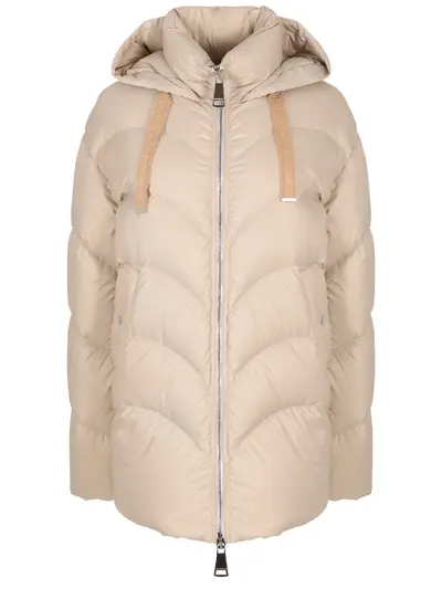 -Бежевый удлиненный стеганый пуховик от KHRISJOY.
