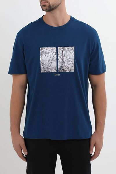Футболка хлопковая с принтом Boss by Hugo Boss 6868050 (синий, lpn29486027)