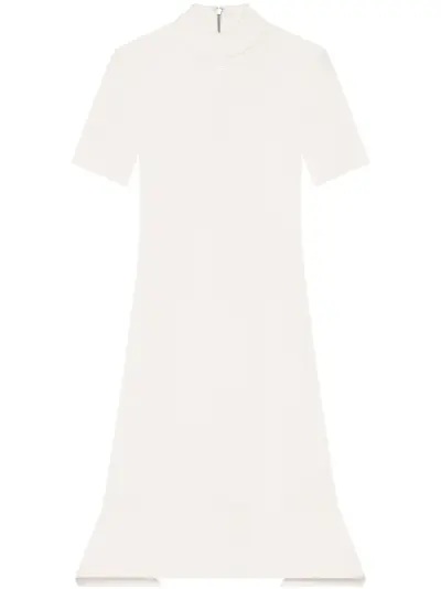 white rear zip fastening ruffled detailing short sleeves thigh-length