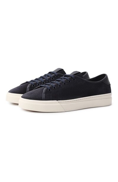 Замшевые кеды Voilee на контрастной подошве укрепили кожаным кантом. Нашивку на язычке модели и фигурную накладку со стежком фирменного оранжевого оттенка на заднике украсили тиснеными логотипами. Сбоку — вышитый мотив double buckle.