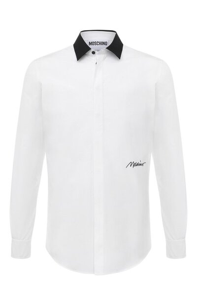 Для пошива кипенно-белой рубашки использовали премиальный тонкий хлопок с плотным переплетением нитей: такой материал приятен к телу, почти не мнется и долго сохраняет идеальный внешний вид. Модель дополнили акцентными черными деталями – отложным воротником и названием марки сбоку, будто написанным ручкой.