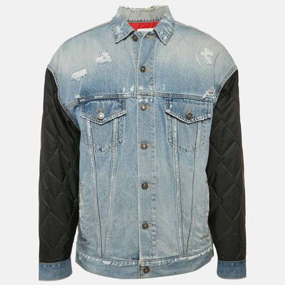 Utility meets urban cool. This Givenchy jacket blends rugged denim with sleek nylon panels, creating a hybrid look that’s equal parts functional and fashion forward.