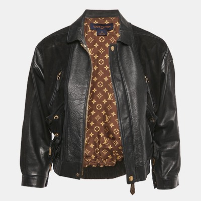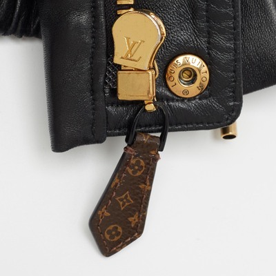 Louis Vuitton Black Velvet and Leather Lace-Up Biker Jacket M 1129218 (чёрный, lpn29514065)