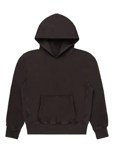 dark brown front pouch pocket slouchy hood long sleeves ribbed cuffs and hem