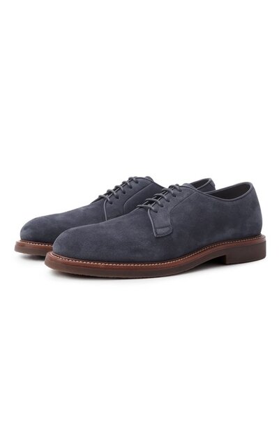 Замшевые дерби с резиновой подошвой будут уместны как в повседневном, так и в нестрогом офисном образе. Пару с миндалевидным мысом отделали гладкой кожей внутри.