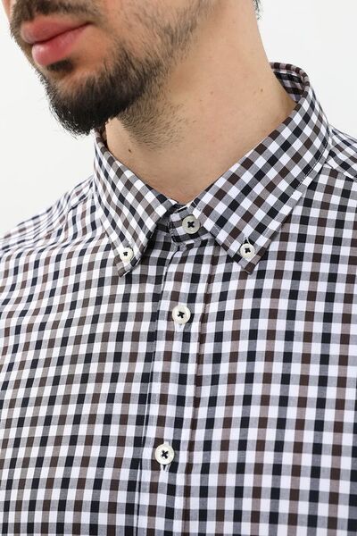 Рубашка хлопковая в мелкую клетку Bugatti 7380955 (синий, lpn29522388)