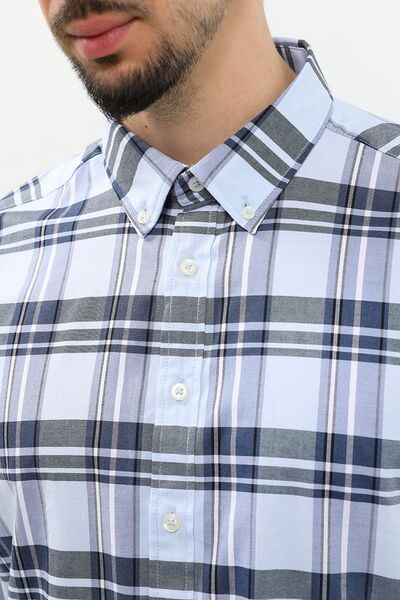 Рубашка хлопковая в клетку Bugatti 7381528 (голубой, lpn29522389)