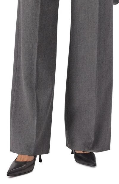 Туфли на изогнутом каблуке средней высоты сшили из телячьей кожи. Модель с зауженным мысом декорировали металлической эмблемой Gancio на заднике.
