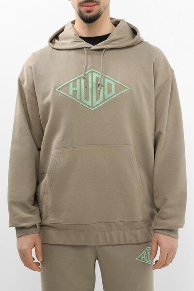 Худи хлопковое с вышитым логотипом Hugo 7615189 (коричневый, lpn29549595)