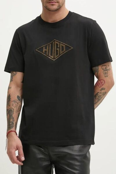 Футболка хлопковая с логотипом Hugo 7615204 (чёрный, lpn29549598)