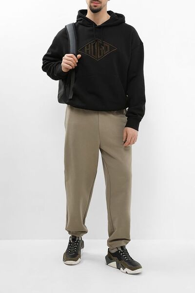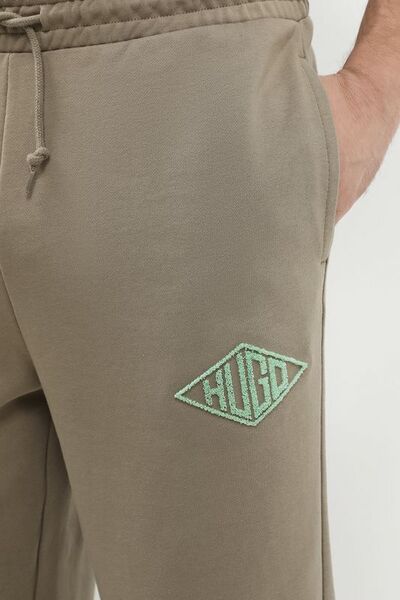 Джоггеры хлопковые на кулиске с вышитым логотипом Hugo 7615207 (коричневый, lpn29549599)