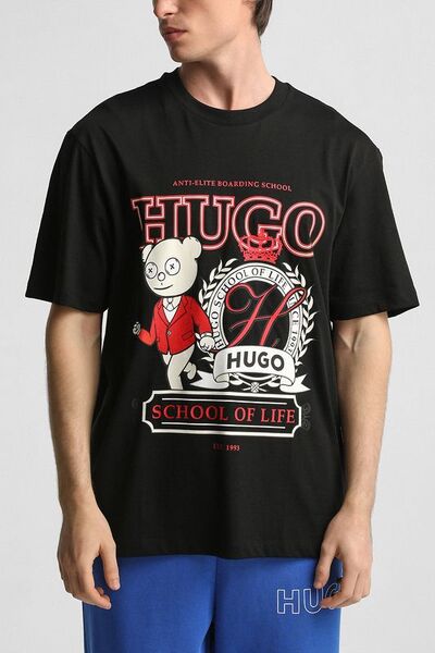 Футболка хлопковая с принтом Hugo 7615696 (чёрный, lpn29549616)