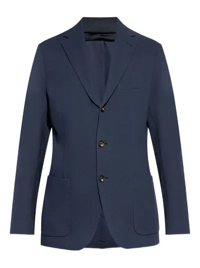 navy blue front button fastening chest welt pocket two side patch pockets buttoned-cuff sleeves
