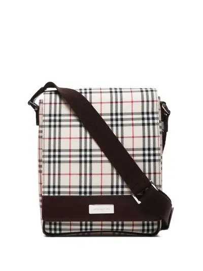 circa 1990-2010s light beige/multicolour nova check pattern leather trim adjustable shoulder strap silver-tone logo plaque to the front foldover top with magnetic fastening internal zip-fastening pocket full lining Condition: GOOD. This previously owned and used item is in good condition with minimal signs of use. This may include fading of material or plating and scratches.